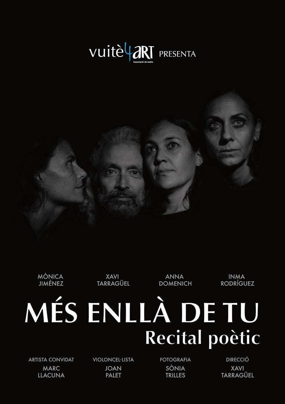 L’espectacle més íntim del Vuitè4ART. Un recital poètic que traspuava bellesa a cada paraula, a cada gest. Varem bandejar els nostres personatges per deixar-nos tocar l’ànima per les veus d’uns quants poetes i poetesses catalans, castellans, anglesos i italians.
